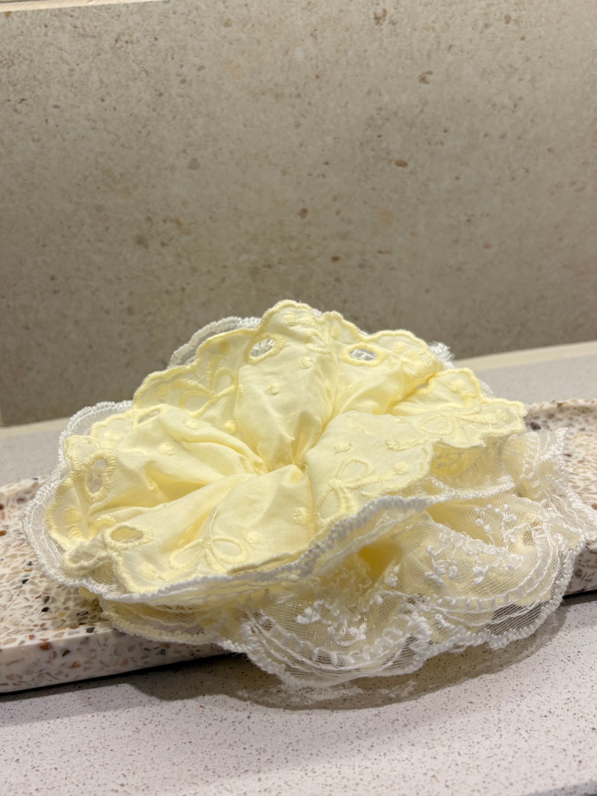 XL Pastel Yellow Lace Luxe Scrunchie